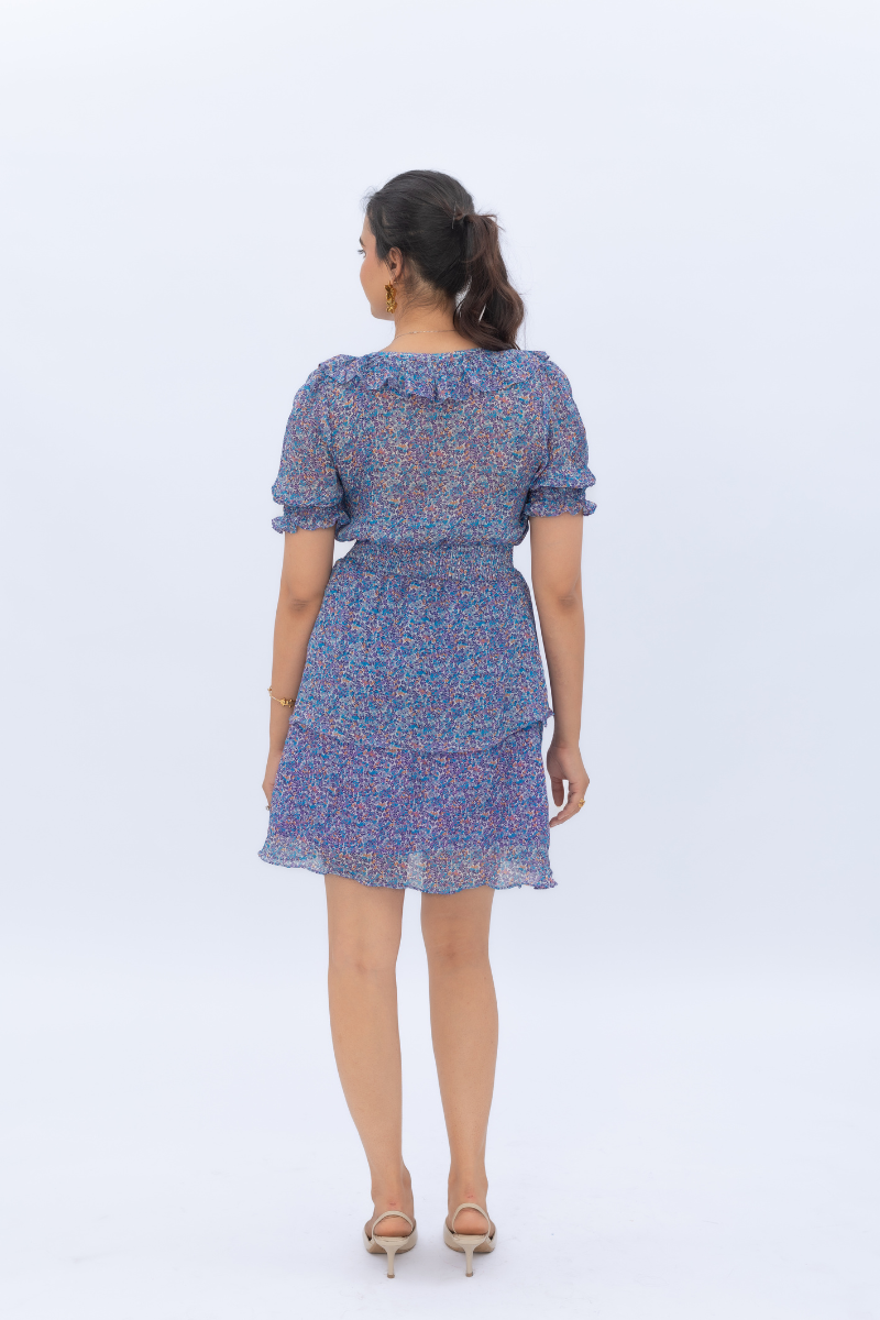 Floaty, flirty, and made for barefoot memories. This soft blue mini features puffed sleeves and a smocked waistline that cinches you in with no discomfort. A fan favorite — and for good reason.