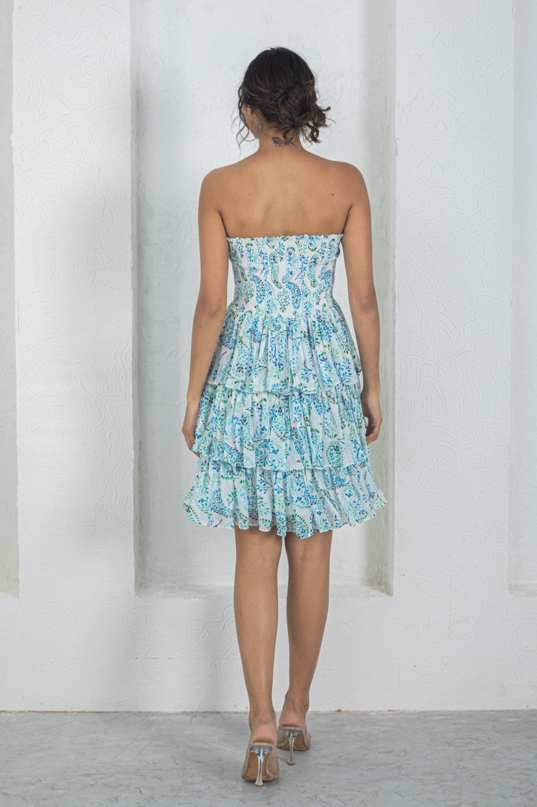 Be cheerful and chic in this blue georgette floral-patterned mini dress. Smocking detailing and frills give it a unique twist while the lightweight fabric ensures you won't get too hot no matter how much you dance the night away! Who says fashion can't be fun?